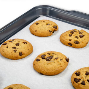 - Silicone treated, non-stick paper pan liners protect baking pans, eliminating the use of oil, sprays, and grease